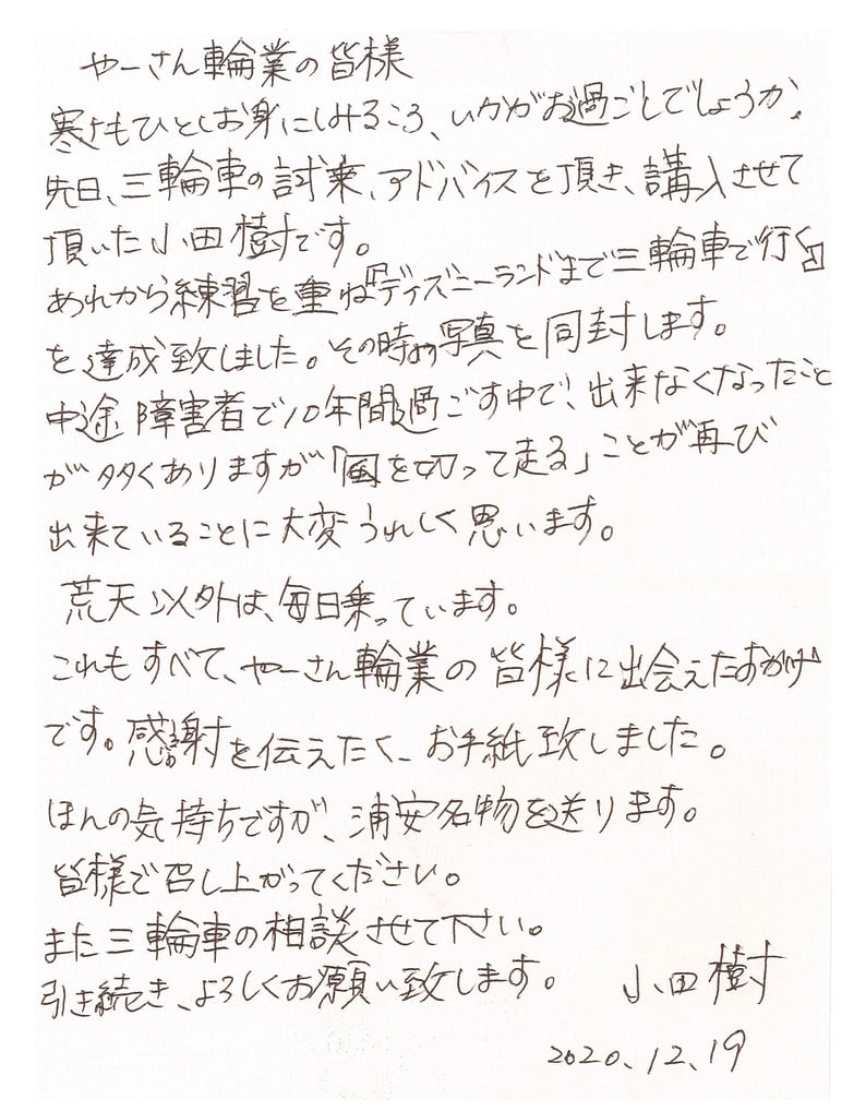 こちらこそ、お礼状を頂戴し嬉しく思います。